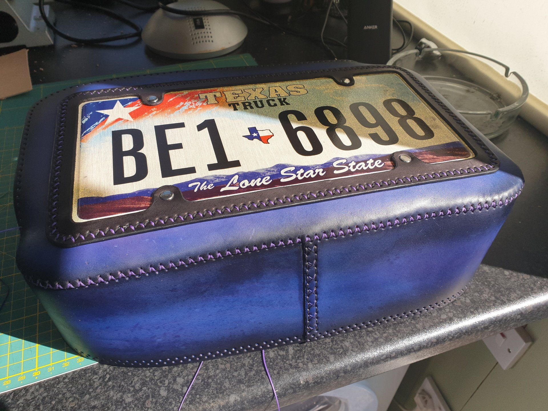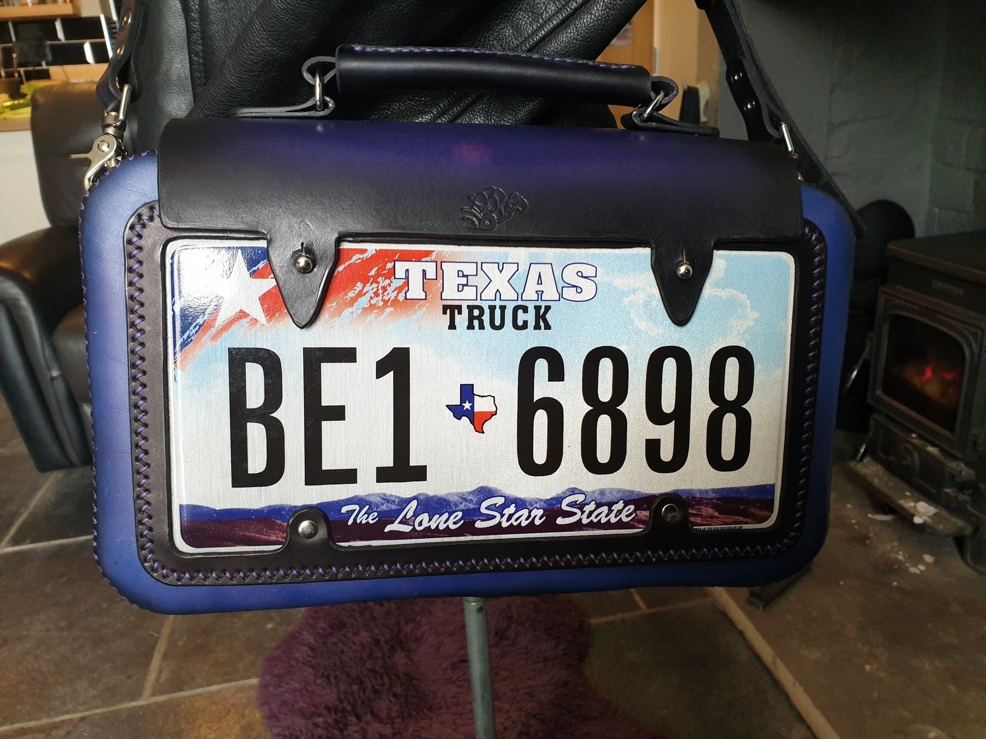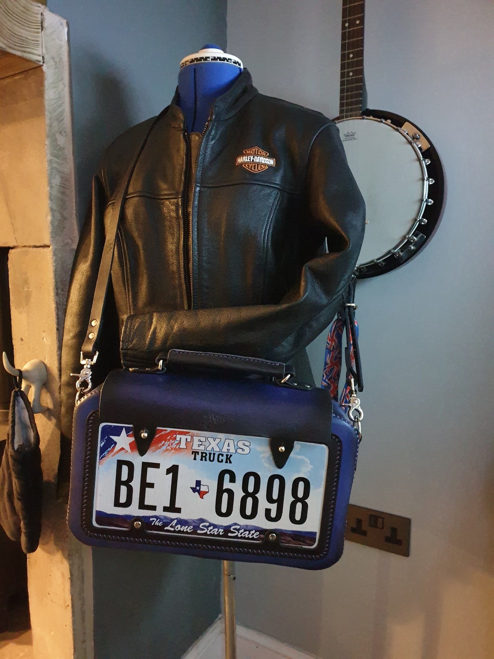 I can replicate the shape of the bag, but each one has it's own unique Texas Licence Plate. As these are Genuine Issued Licence Plates, I cannot replicate them. A Large sized Ladies Day Bag/Handbag. As usual I offer a range of colour options and thread colours. The "Texas Licence Plate Bag" will not be repeated with the same Licence Plate Number.